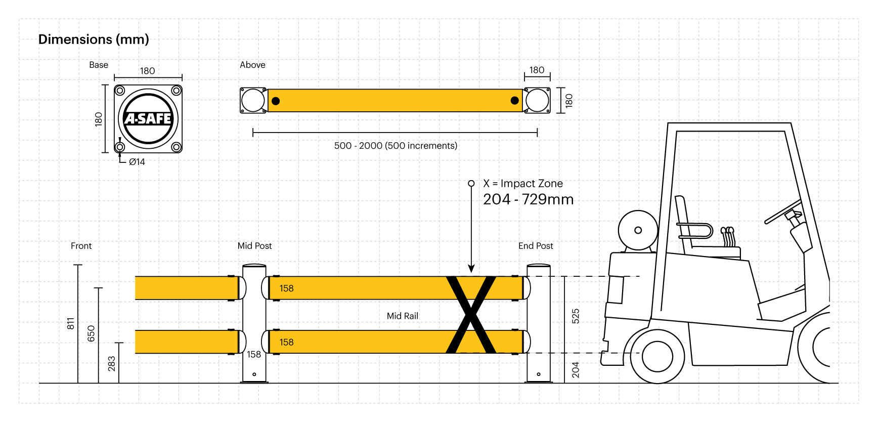 The Double Rail increases the height and strength of the impact zone to provide greater resistance from straying vehicles than the Single Rail. It provides physical protection for vital assets and infrastructure by absorbing and deflecting impact forces. The barrier also offers visual guidance to vehicle drivers, preventing impacts and accidents.
