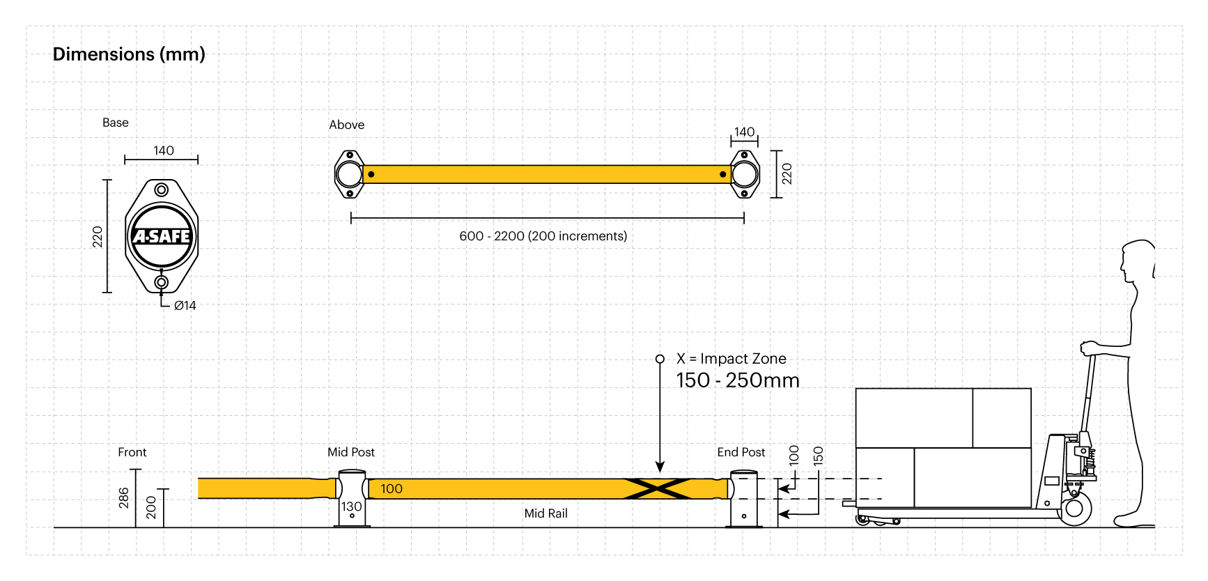 mFlex™ Single Traffic Barrier Ground Level is designed to safeguard walls, structures, goods and machinery from the wear and tear of frequent low-energy impacts at low levels.