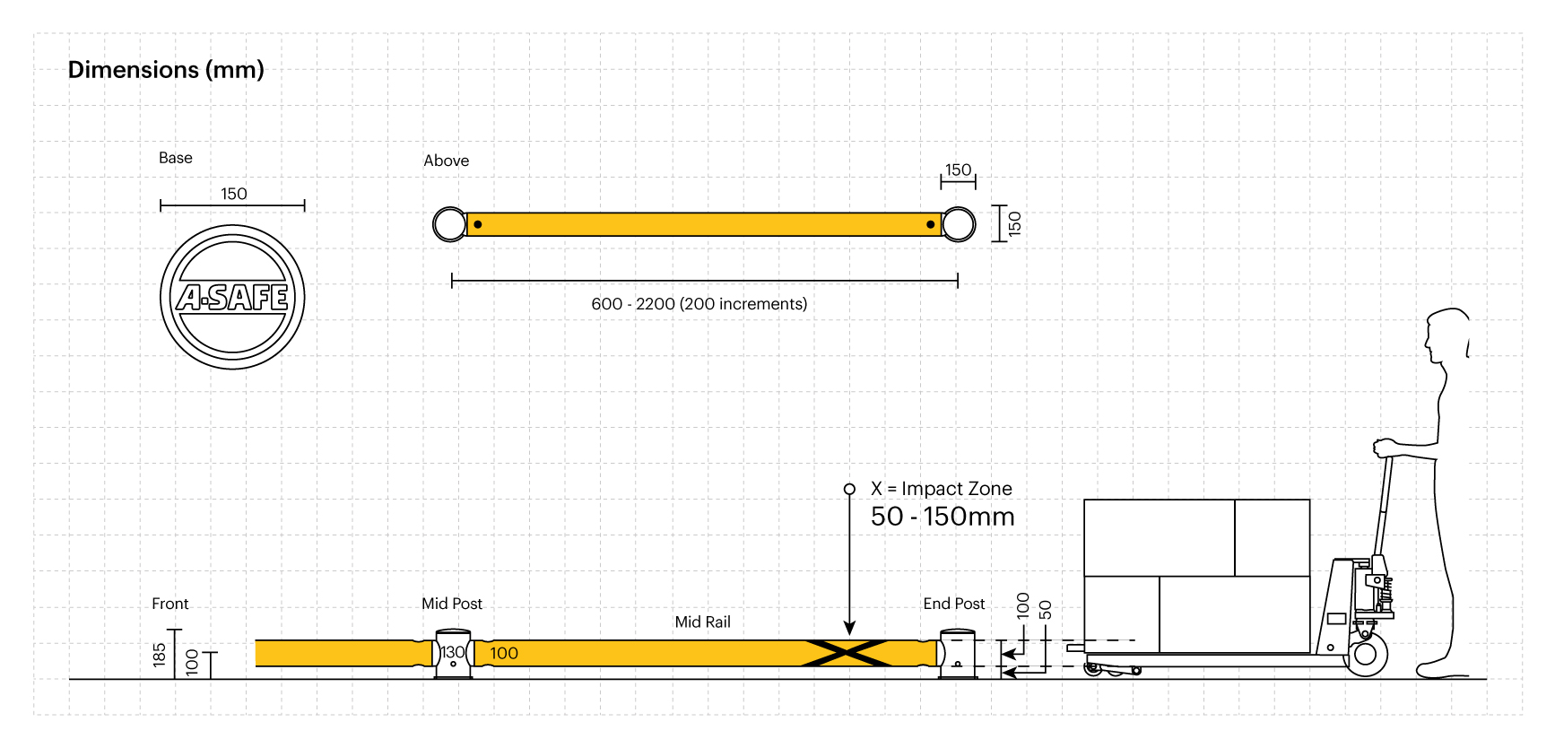mFlex Single Traffic Barrier Ground Level is designed to safeguard walls, structures, goods and machinery from the wear-and-tear of frequent low-energy impacts at near-ground level.